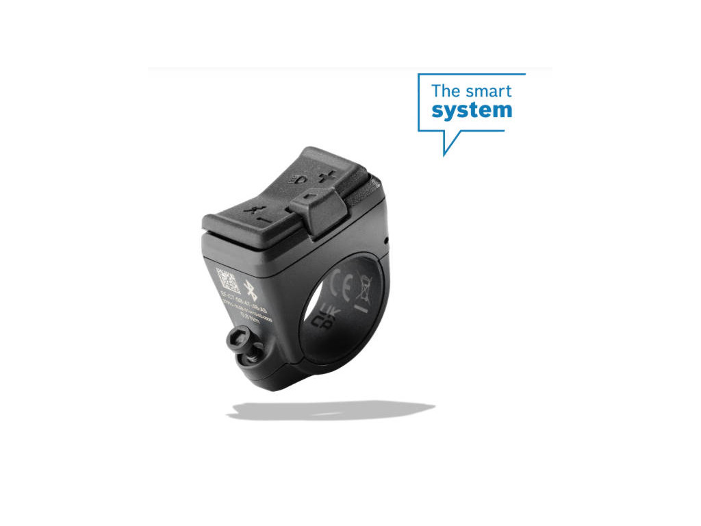 Repuesto de mando remoto mini para sistemas BOSCH E-BIKE SMART SYSTEM. Adecuado para manillar de 22,2 mm. Viene integrado con las bicicletas eléctricas con motor BOSCH SMART SYSTEM temporada 2023 en adelante.