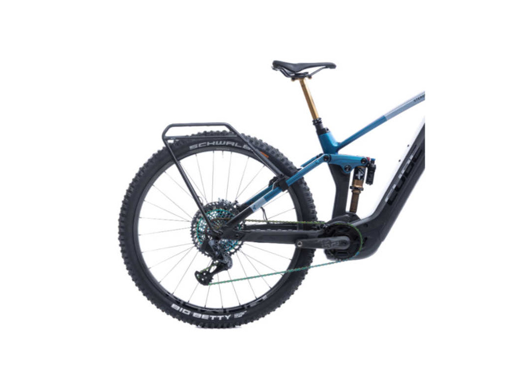 Portabultos ACID FULL SUSPENSION trasero ideal para bicicletas eléctricas doble suspensión CUBE STEREO HYBRID 140 Y 160 desde el 2020 en adelante. Va cogido al eje de la rueda, (eje incluido). Soporta hasta 15 kilogramos de peso. Ideal para viajes medios y largos.